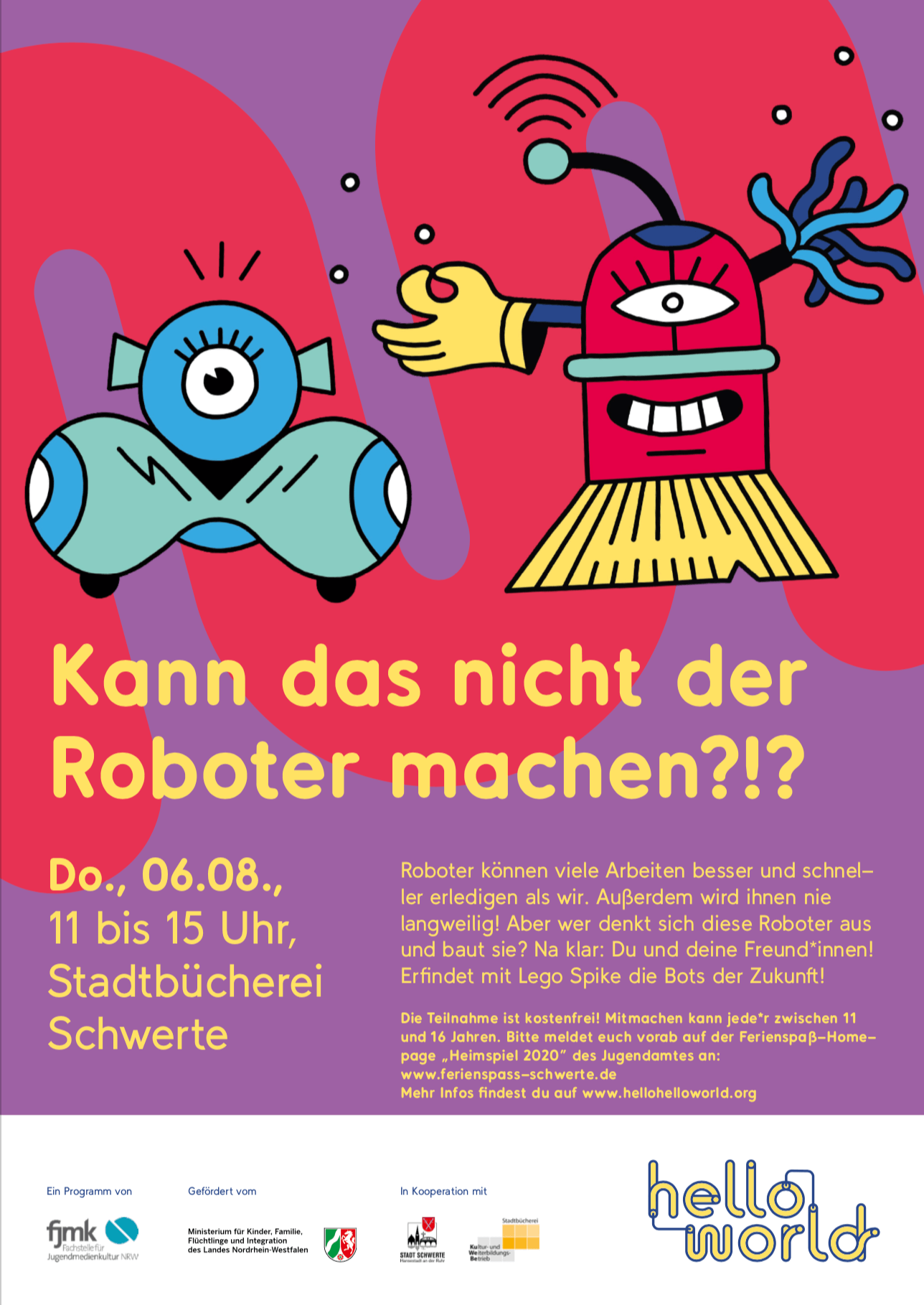 Der Workshop findet statt von 11 bis 15 Uhr in der Stadtbücherei Schwerte, Hagener Str. 7, 58239 Schwerte.